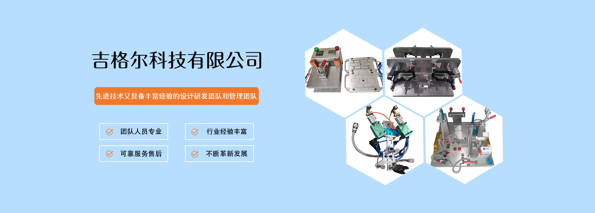 苏州吉格尔科技( SuZhou Jig-Tech )有限公司位于苏州木渎,主要从事灌胶工装治具、注塑埋入(Insert Molding)自动化设备以及各类高难度治具与小型自动化设备的研发、设计与制造; 可制作髋臼锉(阿基米德螺线凸齿)模具; 对于高难度案例,我们有亮剑精神。 ...